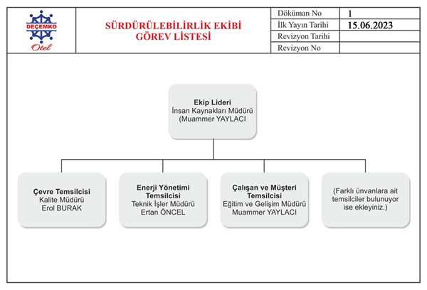 - Her birimden bir personelin seçilerek otelin çevre çalışma grubunun ya da "yeşil takım" oluşturulması,